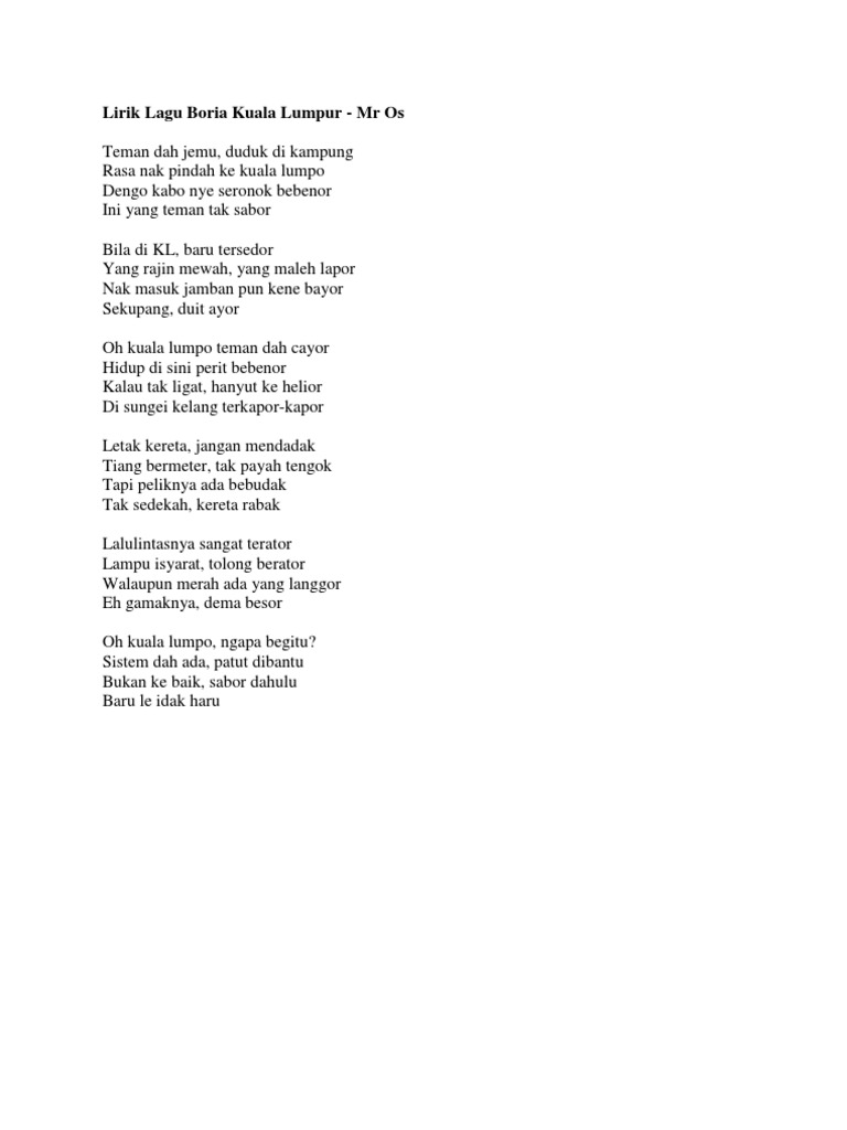 Lirik Lagu Boria Kuala Lumpur Pdf